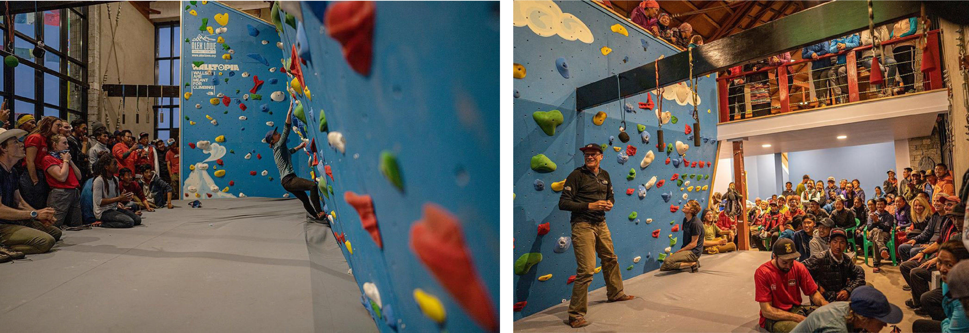 The final version of the climbing wall, in use at the KCC's dedication ceremony.